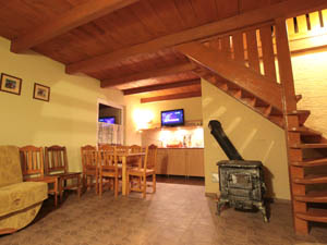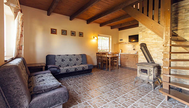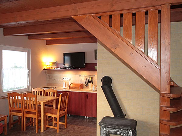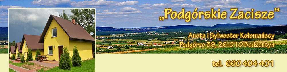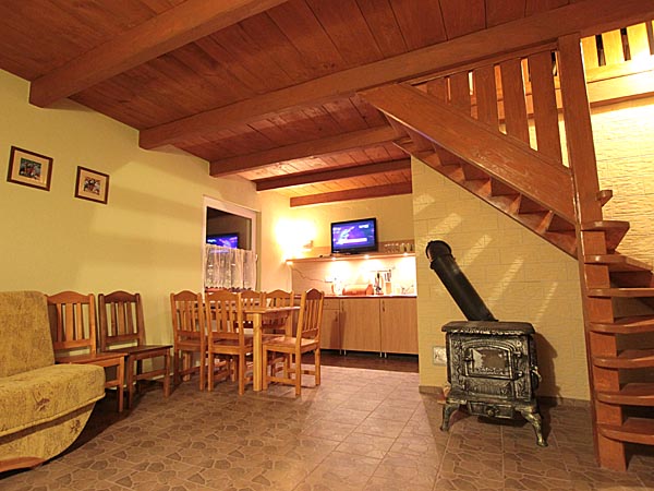 W Podgórzu czeka na Ciebie naszych osiem nowych domków. Każdy jest ogrzewany, a dodatkowo w saloniku znajduje się kominek i zapas drewna. Ponadto na parterze jest w pełni wyposażony aneks kuchenny i łazienka. Na piętrze są dwie sypialnie. Teren jest ogrodzony, a samochód zaparkujesz przed domkiem. Latem spędzisz niezapomniane chwile przy ognisku. Spacerując poznasz urokliwą okolicę. Gotowa jest sala, w której będziesz mógł posilić się pysznymi, domowymi daniami a także posłuchać muzyki, posiedzieć przy kominku z filiżanką aromatycznej herbaty i poczytać książkę z naszej biblioteczki. A może zagramy w szachy lub po prostu porozmawiamy...?